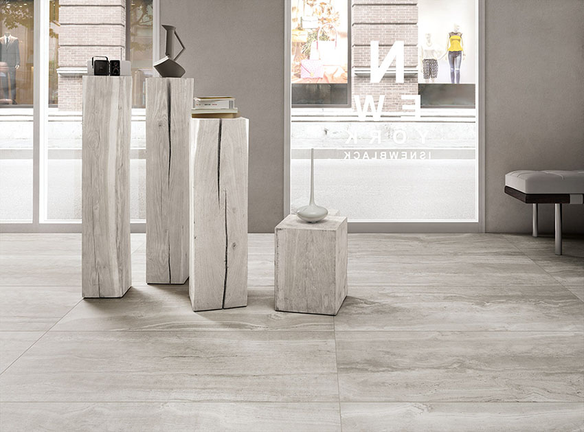 Large format tiles were featured heavily in metals, travertine and marble looks. We loved these tiles as they can be installed seamlessly to make it look like a large slab.